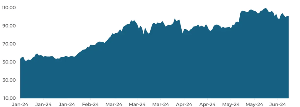 The recent market resurgence has sparked notable advancements in the decentralized finance (DeFi) sector. The broad rally has significantly boosted capital inflows into DeFi, elevating the total value locked (TVL) to an impressive US$101.5 billion, a significant increase from US$53.75 billion at the beginning of the year, marking a robust 84% year-to-date surge.