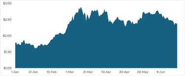 Figure 1 – YTD Crypto market capitalization (USD,Tn) is up 39%